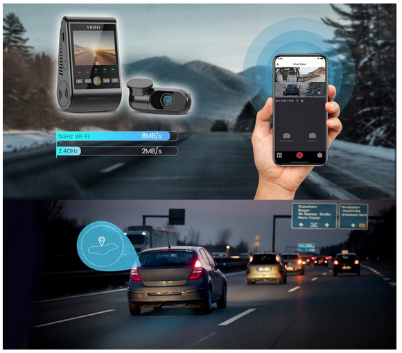 W kamerze A229 został wbudowany wydajny moduł WIFI pracujący w dwóch pasmach : 2.4Ghz oraz 5Ghz. Dzięki temu kamerą możemy sterować za pomocą dedykowanej aplikacji VIOFO, która jest darmowa na systemy Android oraz iOS.